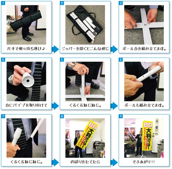 今日はのぼり旗用、持ち運びポール立台セットのご紹介です。